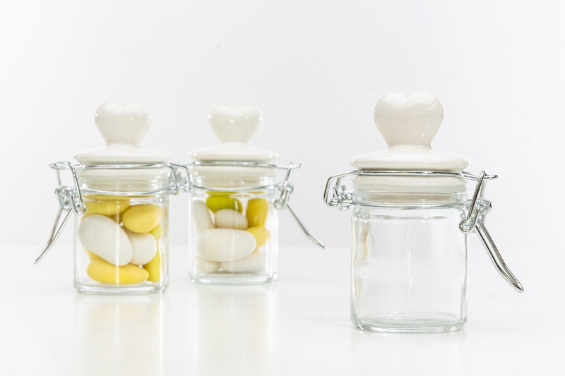 Barattolo in vetro con tappo ermetico in ceramica bianca.