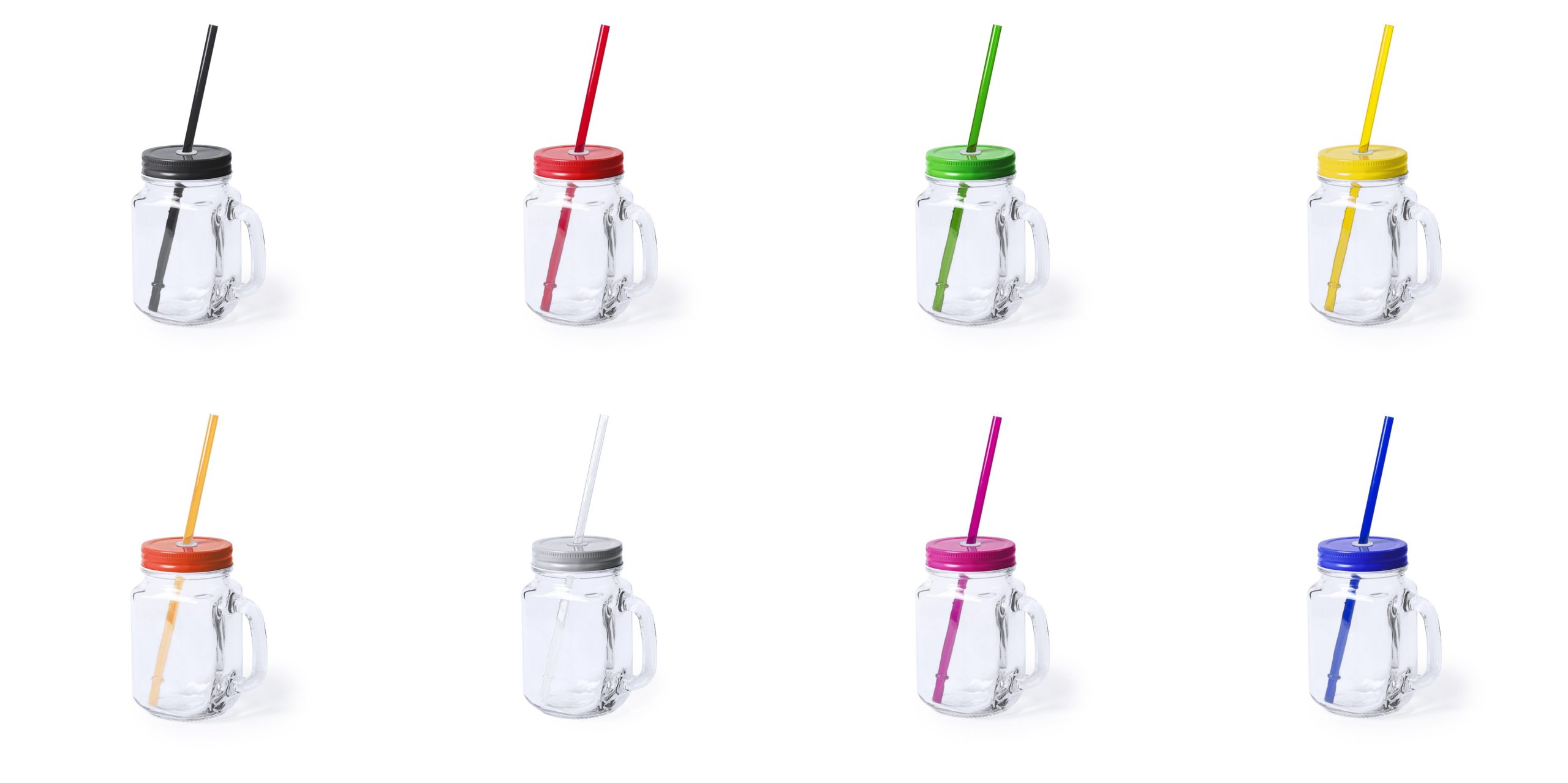 Barattolo multiuso in vetro da 500 ml con coperchio e cannuccia in colori vivaci.