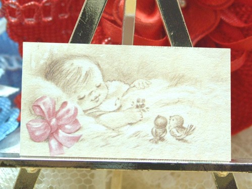 Set da 20 biglietti in cartoncino crema opaco con stampa bimba nanna