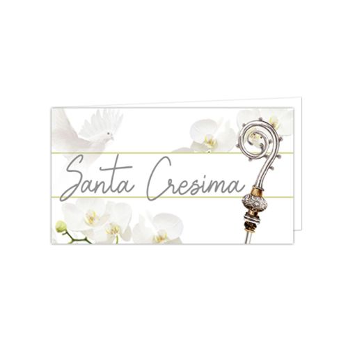 Set da 20 biglietti in cartoncino bianco opaco con stampa Cresima con Colomba