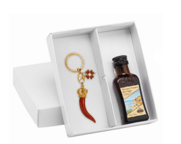 Scatola con bottiglietta di amaro.