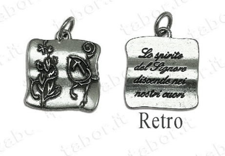 Ciondolo  misura 2×2 in metallo argentato.
