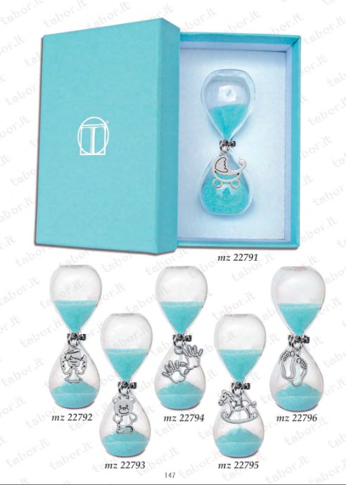 Clessidra sabbia celeste con ciondoli a scelta