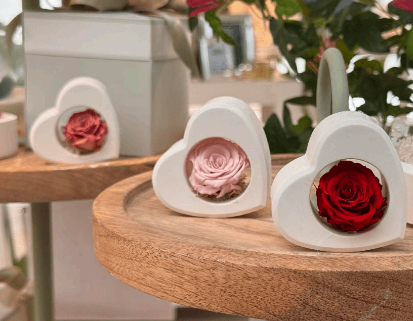 Cuore in polvere di marmo. Con rosa stabilizzata.