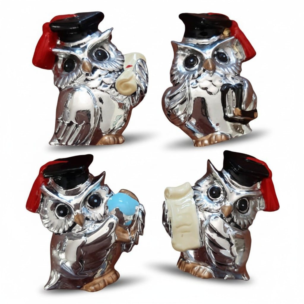 Calamite gufetti in metallo argentato. Sono 4 modelli misti.