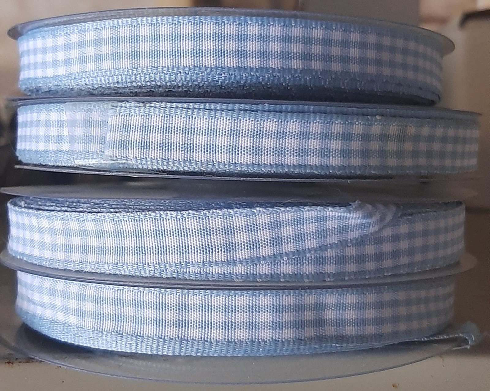 Nastro cotone quadratini celeste 25 mt 10 mm