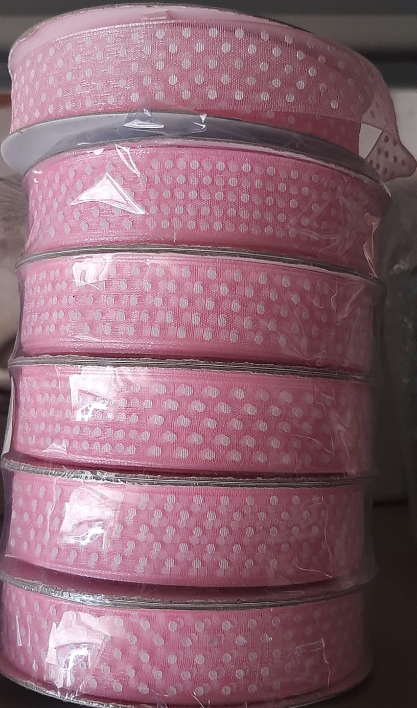 NASTRO ORGANZA ROSA CON POIS 50 MT 20 MM