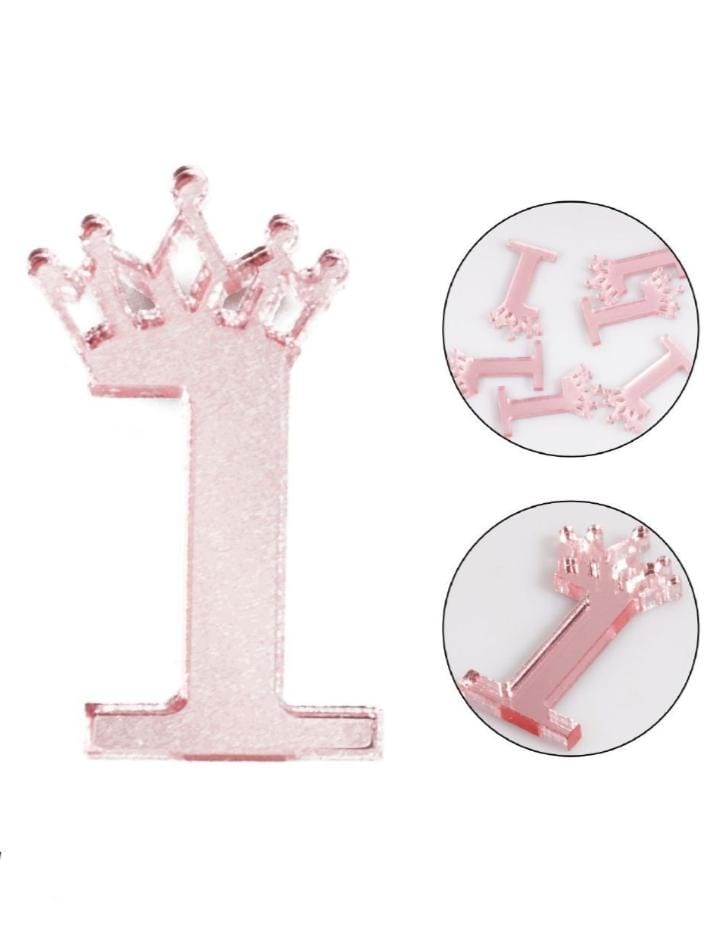 Numero in plexiglass rosa con coroncina.