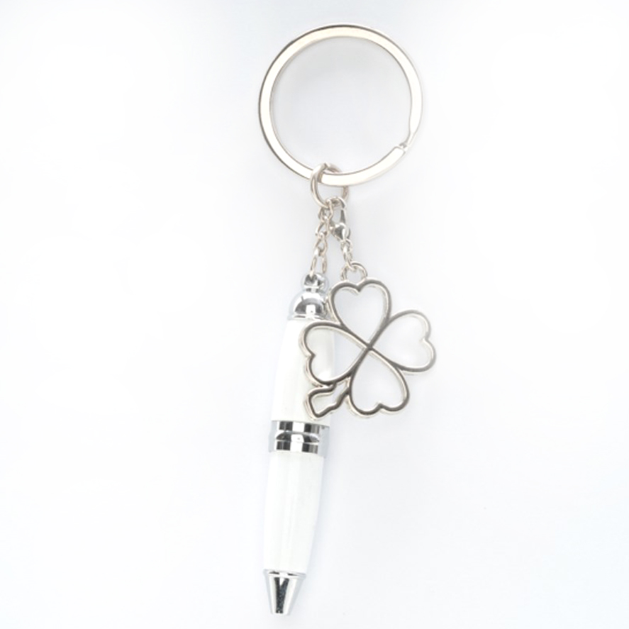 Mini penna smaltata bianca porta chiavi quadrifoglio