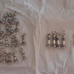 Bomboniere ciondoli scacchi re e regina ricoperti in argento.
