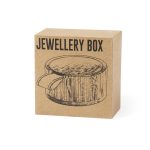 Portagioie della linea Natura in bambù. Con 4 scomparti interni, coperchio con manico in PU e specchio 1X di 6cm di diametro integrato nel coperchio. Con pellicola protettiva e confezionato in una scatola individuale di eco design.