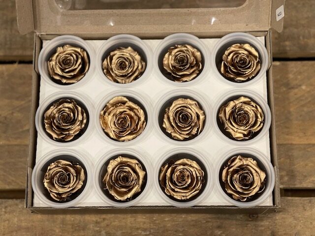 Queste rose oro hanno subito una colorazione post liofilizzazione.