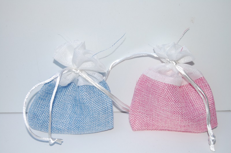 Sacchetto juta rosa e organza bianca
