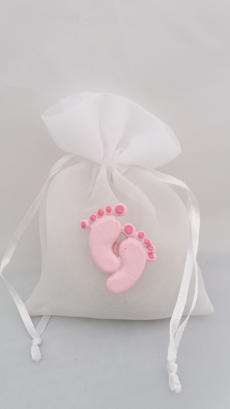 SACCHETTO ORGANZA BIANCA PIEDINI RESINA ROSA H 10 BASE 8