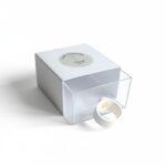 Scatolina in cartoncino bianco perlato con cassettino in plexi e manichetto in similpelle