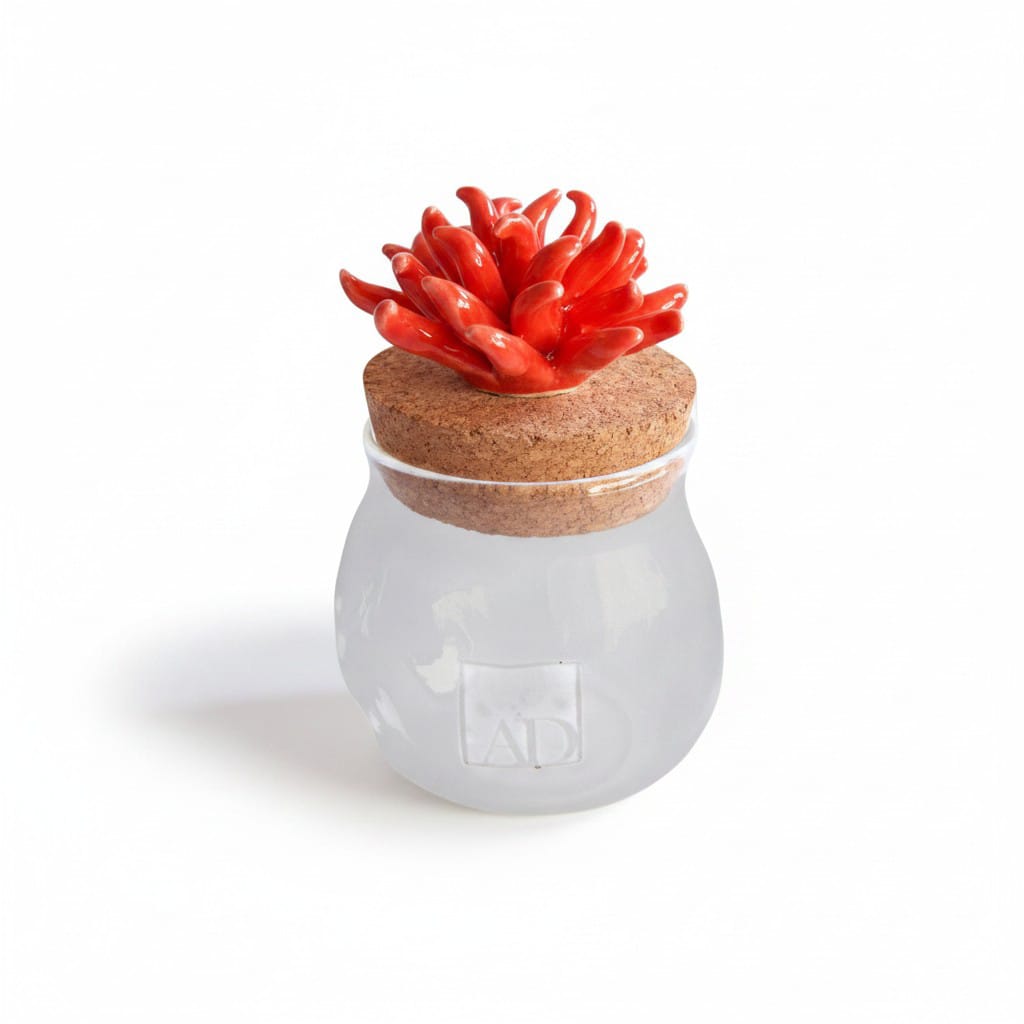 Barattolo vetro tappo sughero corallo in porcellana