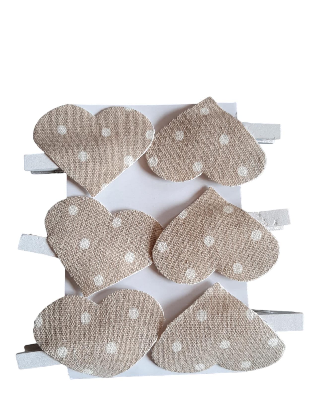 Mollettine legno bianco con cuoricino in juta beige pois bianchi