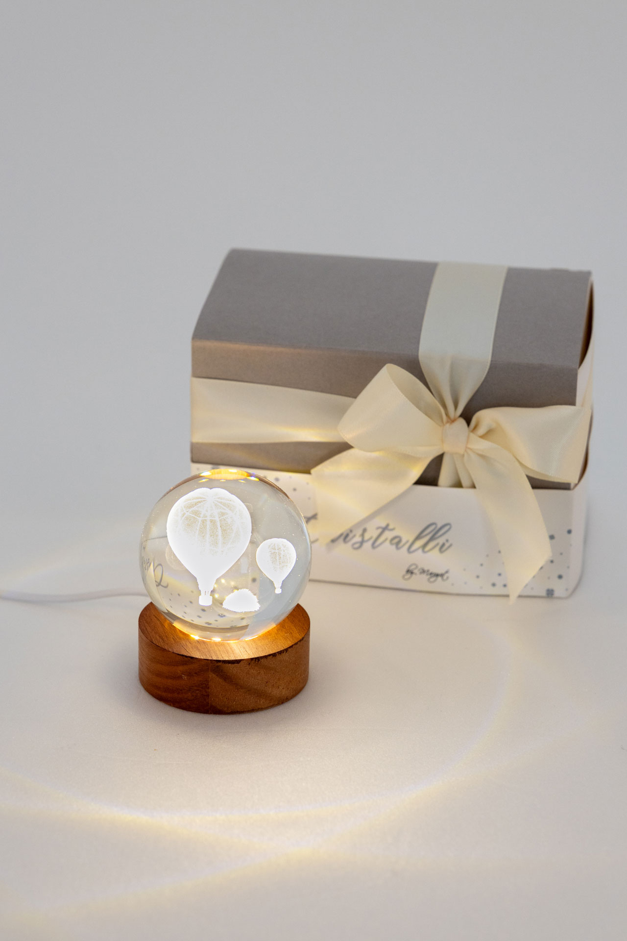 Sfera al laser con luce led, alimentazione con filo
