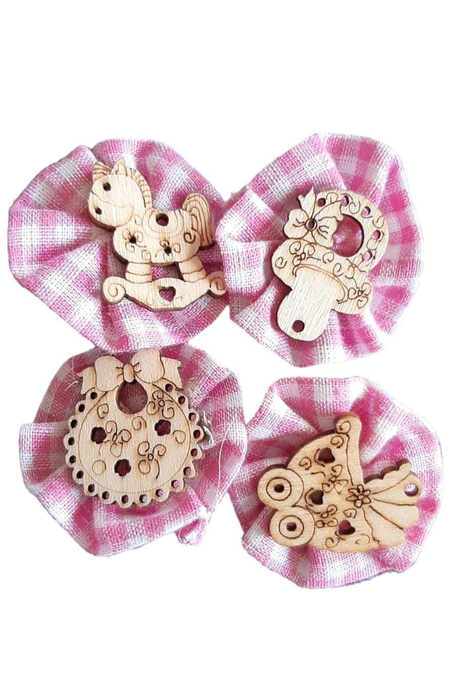 Soggetti bimba in legno su ruches cotone quadratini