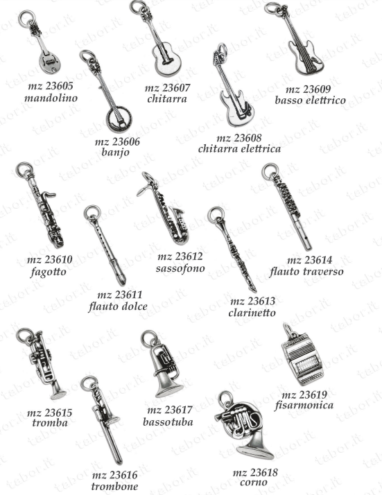 mandolino, banjo, chitarra, chitarra elettrica, basso elettrico, fagotto, flauto dolce, sassofono, clarinetto, flauto traverso, tromba, trombone, bassotuba, corno, fisarmonica