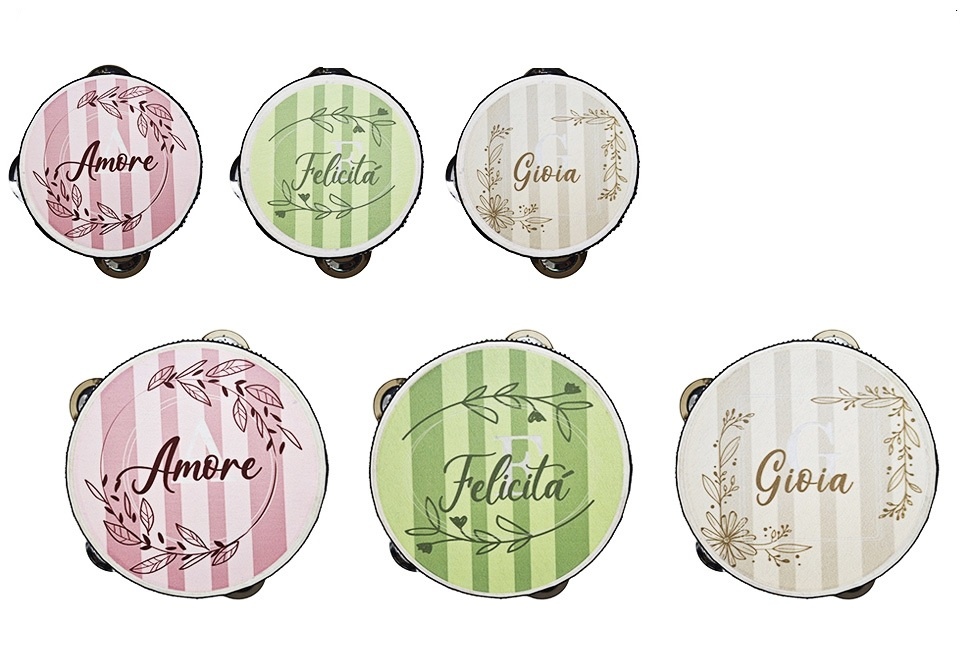 Tamburello prestampato tre scritte Amore, Gioia, Felicità assortiti,