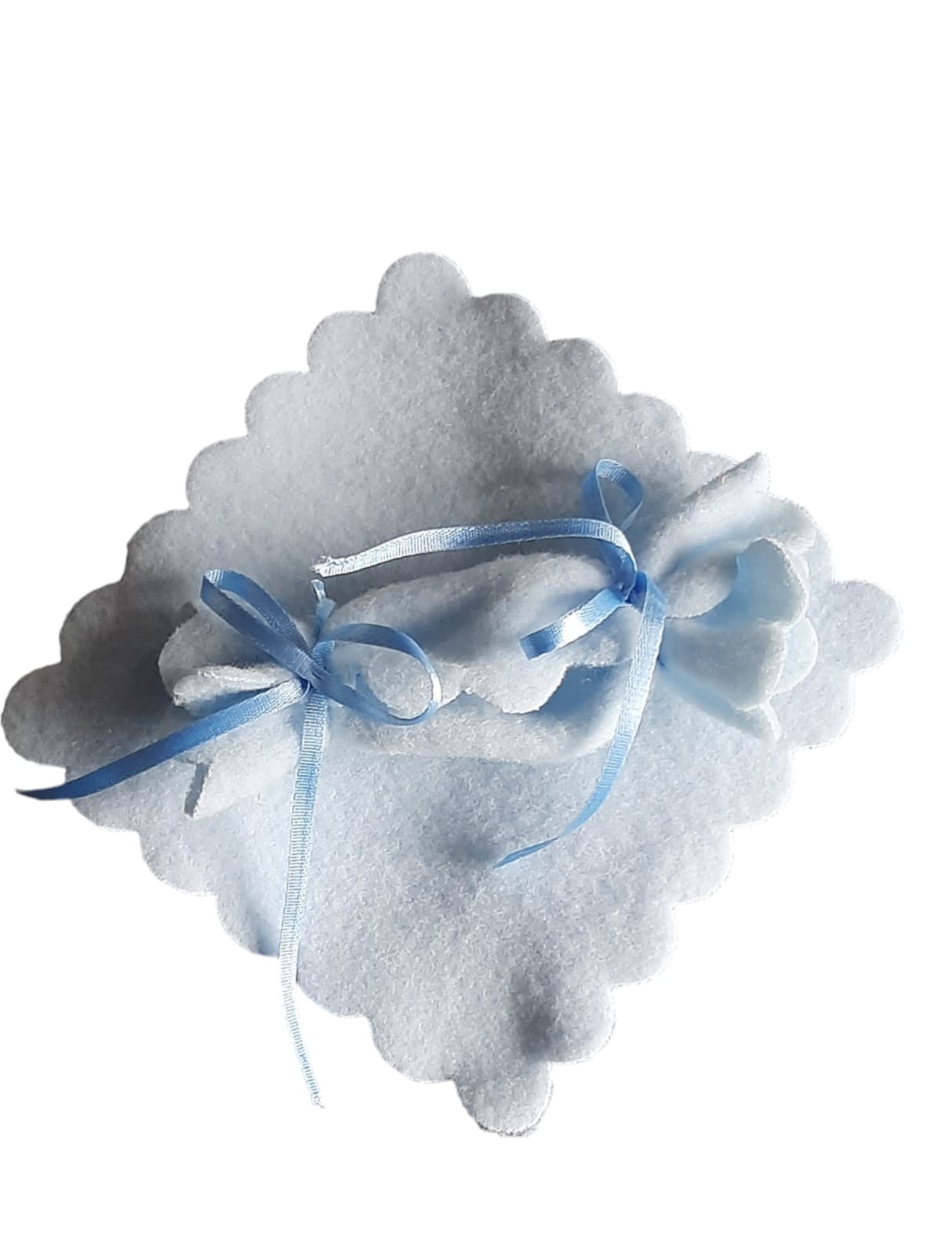 Il nastro in foto  non è compreso. Si vendono da realizzare. Solo il panno quadrato