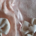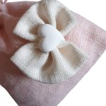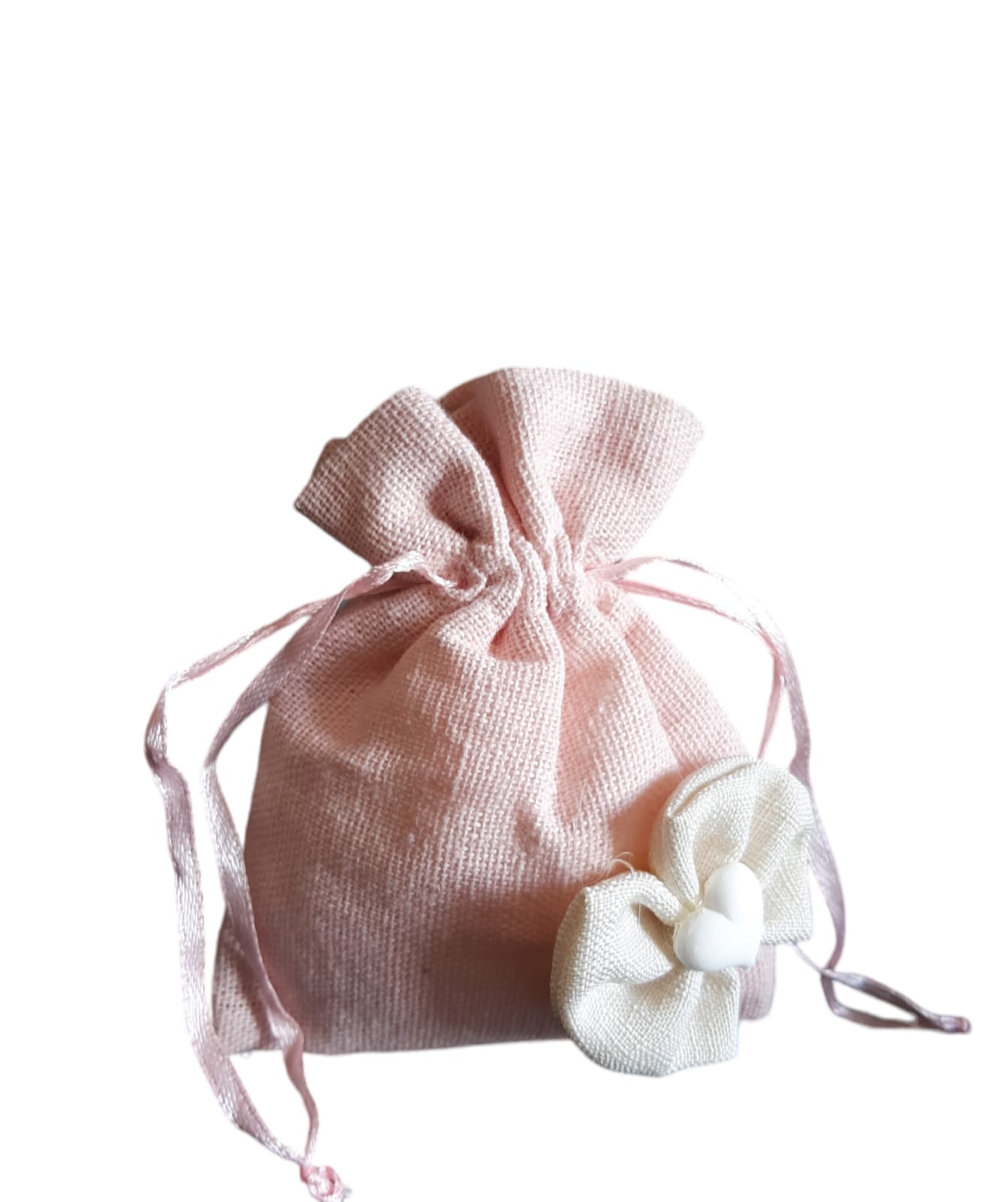 Sacchetti juta rosa, con fiocchetto panna e cuoricino in gesso.