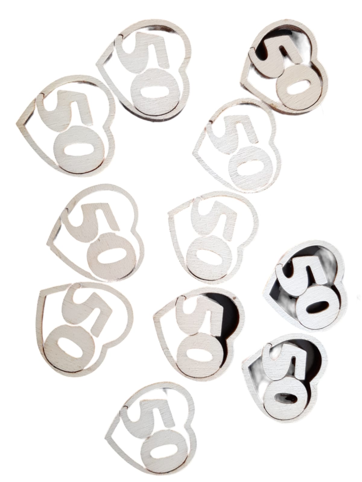 Cuori in legno con 50.